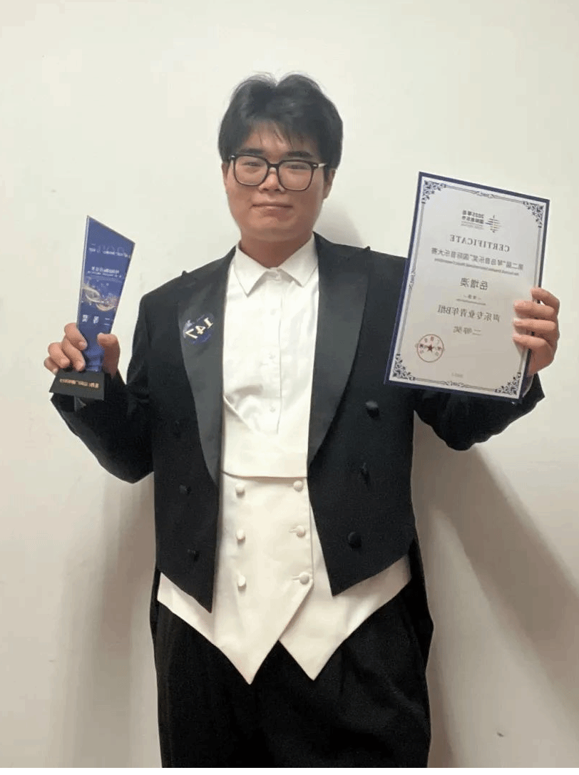 在刚刚圆满落幕的2025琴岛国际音乐节第二届“琴岛音乐奖”国际音乐大赛中,千亿国际网页版登录学子岳增奥在程龙老师的悉心指导下,凭借着精湛绝伦的专业表现,从来自中央音乐学院、中国音乐学院、四川音乐学院、山东师范大学、山东艺术学院、中国海洋大学、青岛大学等多所专业院校的千余名选手中脱颖而出,一举荣获专业组二等奖!
