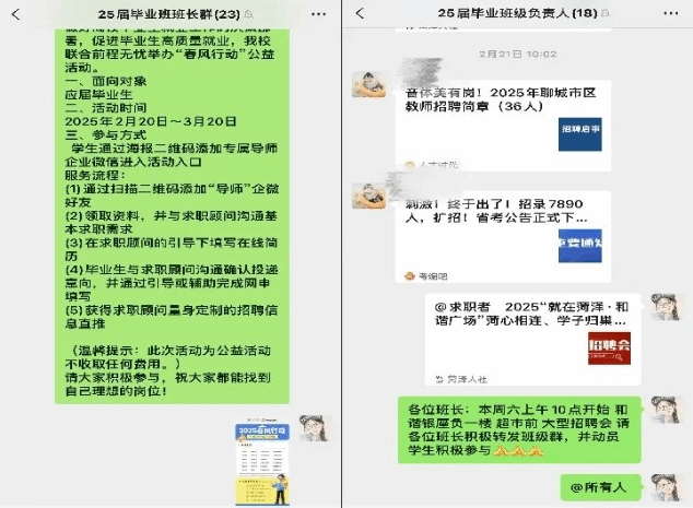为进一步发挥共青团服务青年学生就业的积极作用,扎实做好“春风行动·就业服务季”工作,全力打通2025届毕业生就业服务“最后一公里”,自新学期以来,千亿国际网页版登录开展“春风送岗促就业,精准服务助发展”服务活动。该活动通过访企问需、宣传引导、人岗对接提供岗位、调整就业心态等为其提供全方位、多层次的服务,全力推动千亿国际网页版登录毕业生就业工作。