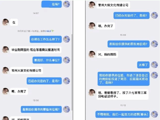 建立精准帮扶工作服务群,提供多频次、多层次的精准服务。结合学生就业意愿和所学专业,按照“人岗相适”原则,精心挑选适合学生的岗位,在线实行“点对点”、“人对人”推送,解决信息不对称的难题,截止到目前共推送20余次就业信息。